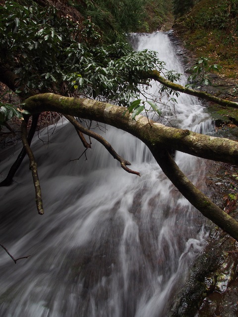 この滝を正面にみて右から高巻く道があるので進んでいくと仏の小屋滝に辿り着けます。