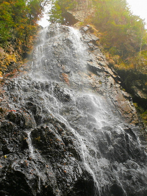 井光川支流にかかる滝で落差は40M級、美しく飛沫を上げて分岐する瀑布は絶景です。