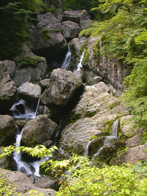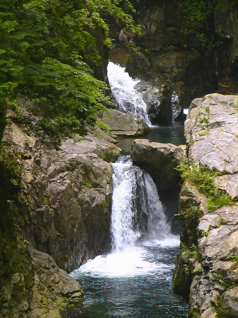 みたらい渓谷の主瀑のすぐ下流に位置する二条の滝です。