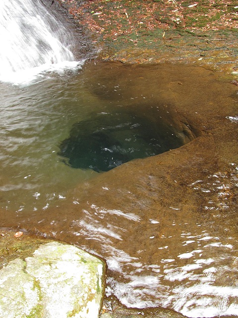 滝壺の真ん中にある深い穴・・・これは横穴気味に奥へと続いているように見えます。