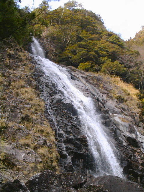 熊野川支流田長谷にかかる落差80M級の二段の滝です。