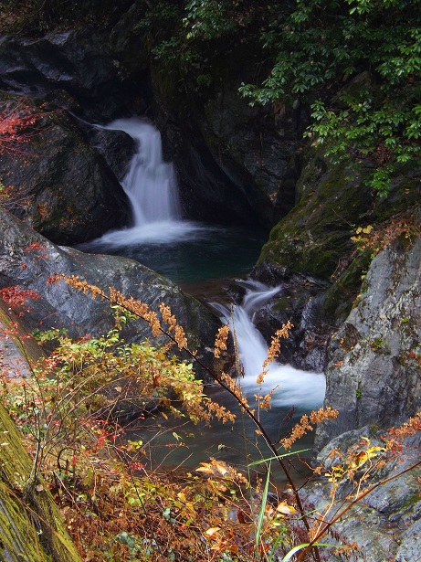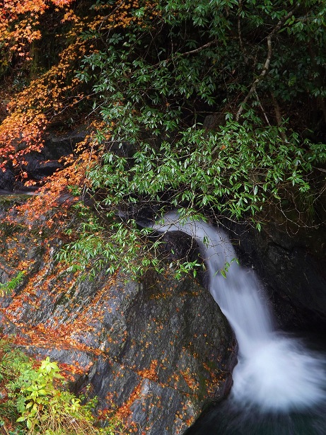 町道?沿いで河川も護岸されていますが、その滝姿は紅葉と相まって絶景ぶり