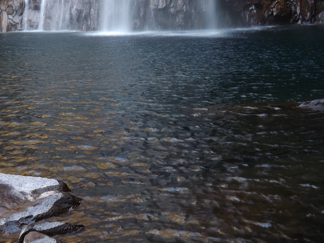 ド迫力の瀑布はあまりに飛沫が激しく撮影はままなりません、そして深く青い滝壺も実に美しいものです。