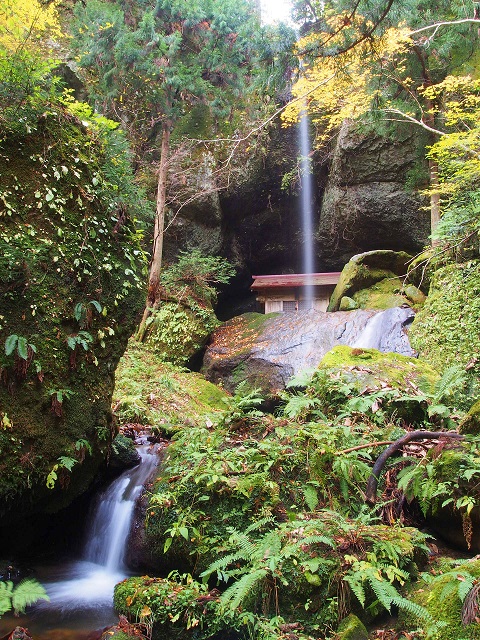 信仰の滝で滝背後の洞窟に吉滝神社があります。
